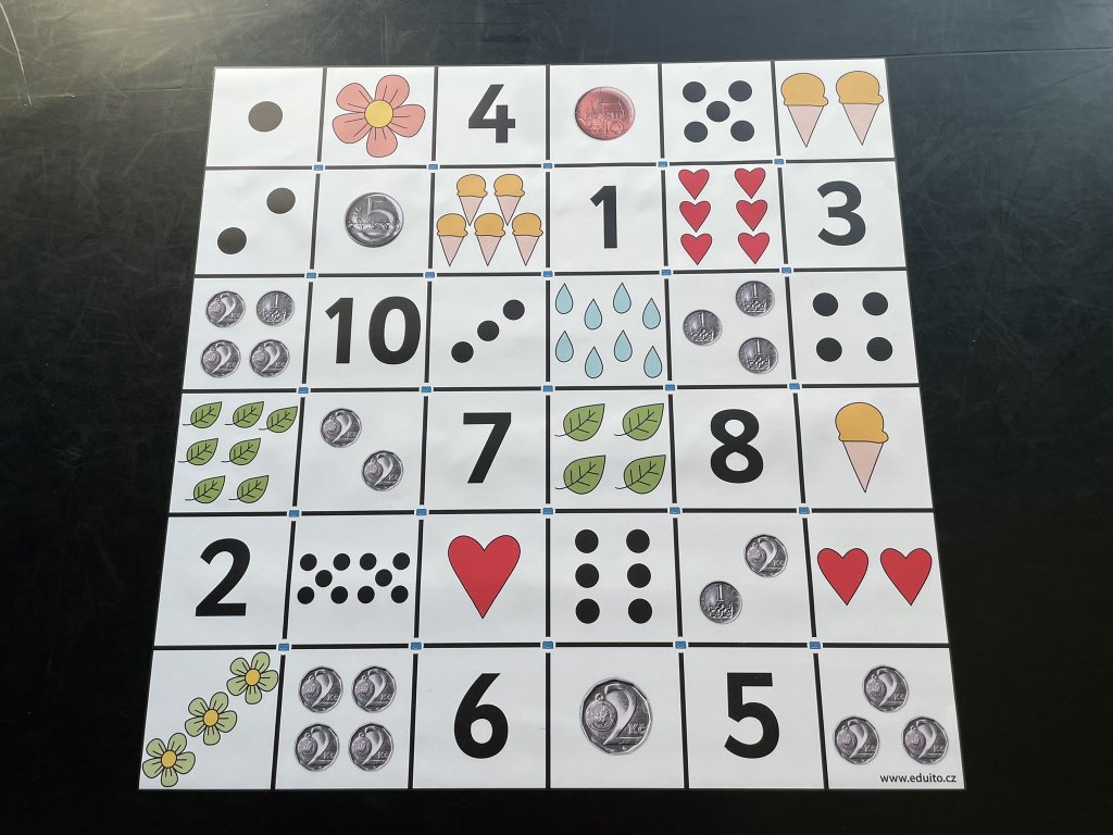 Čtvercová síť je vhodná pro tvorbu vlastních úloh na rozvoj finanční a matematické gramotnosti předškolních dětí.