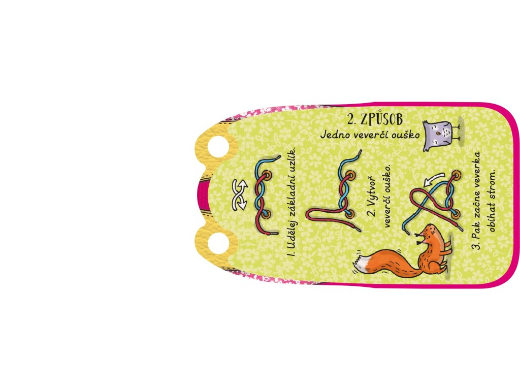 V knize naleznete dva způsoby zavazování tkaniček, aby si mohl každý vybrat ten, který je mu bližší. Tkanička se dá z jednotlivých dírek vytáhnout stejně jako ze skutečné boty.