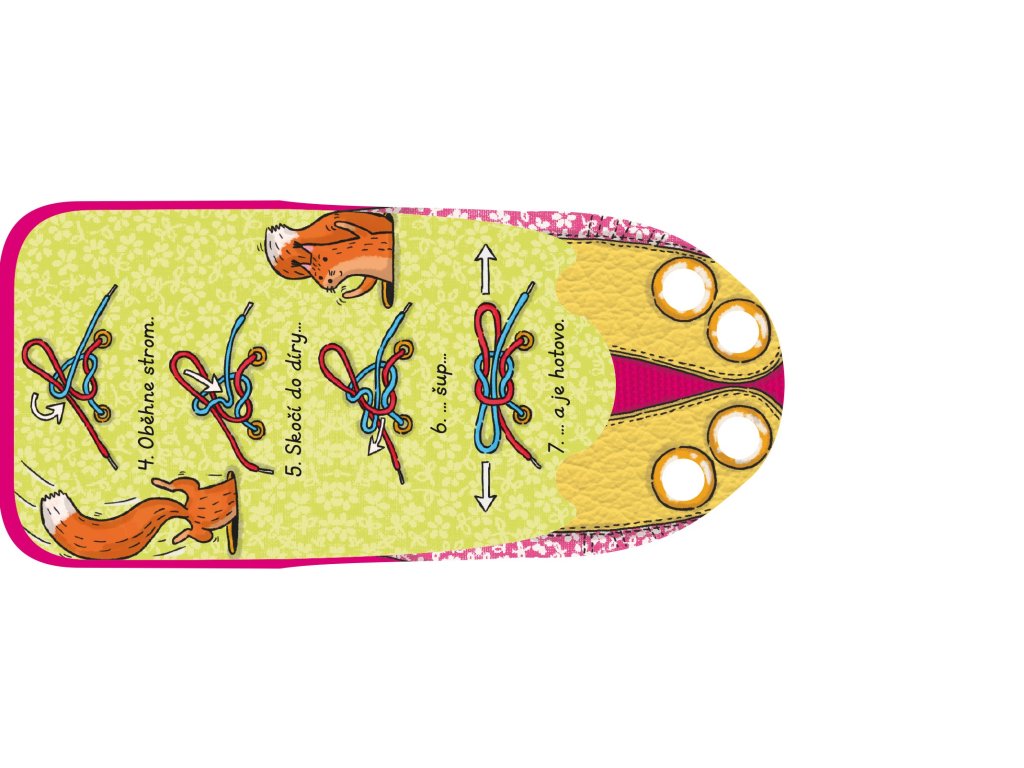 Leporelo ve tvaru dětské botičky naučí děti přístupnou a hravou formou zavazovat tkaničky.